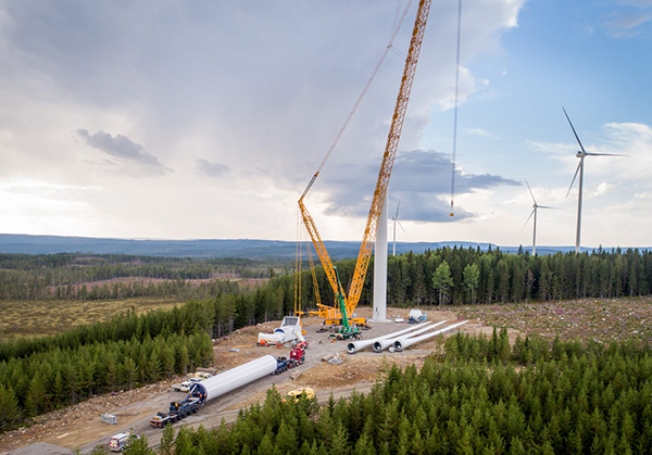 Tuulivoimalan asennus käynnissä.